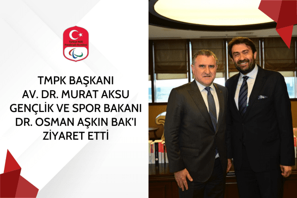 13 Haziran 2023 TMPK BAŞKANI AV. DR. MURAT AKSU GENÇLİK VE SPOR BAKANI DR. OSMAN AŞKIN BAK’I ZİYARET ETTİ Türkiye Milli Paralimpik Komitesi Başkanı Av. Dr. Murat Aksu, Türk sporuna uzun yıllardır hizmet eden, başta engelliler olmak üzere tüm… Devamını Oku